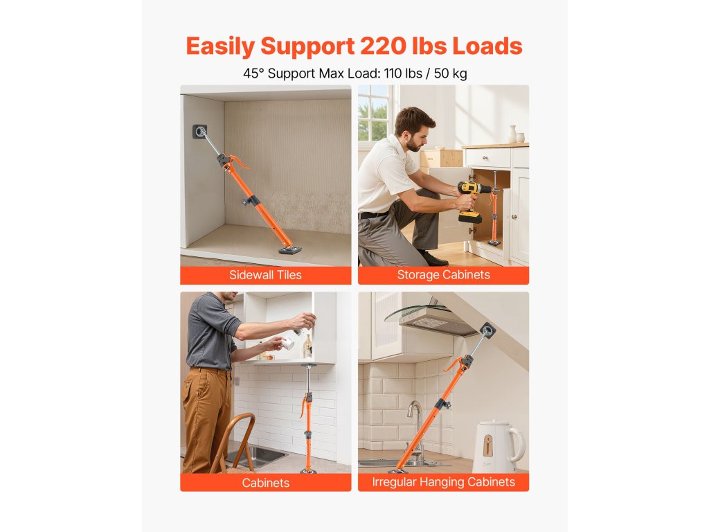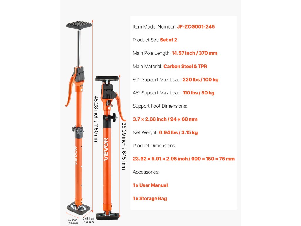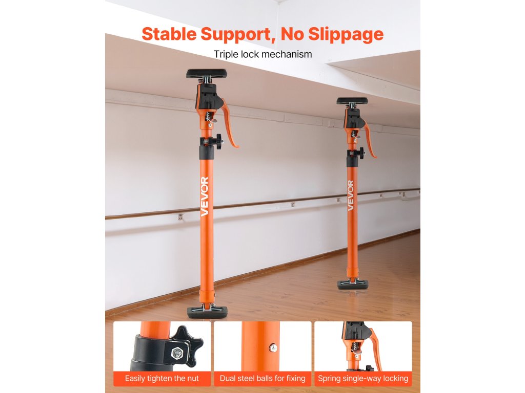 Ez a 2 darabos szekrénytartó rúdkészlet hatékony teherbírást biztosít az építkezéseken, raktárakban és otthoni projektekben. A 220 font teherbírású, állítható magasságú és biztonságos reteszelésű kialakítással ideális szekrények, gipszkarton és egyéb tárgyak emelésére vagy tartására.