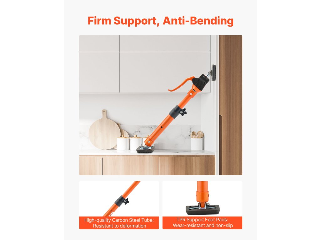 A szekrényemelők csúszásmentes habszivacs hüvelyei és ergonomikus alumínium fogantyúi biztonságos és kényelmes fogást biztosítanak. A gyorskioldókar és a TPR talpbetét stabil, karcmentes érintkezést biztosít, ideális a gyakori önálló feladatokhoz.