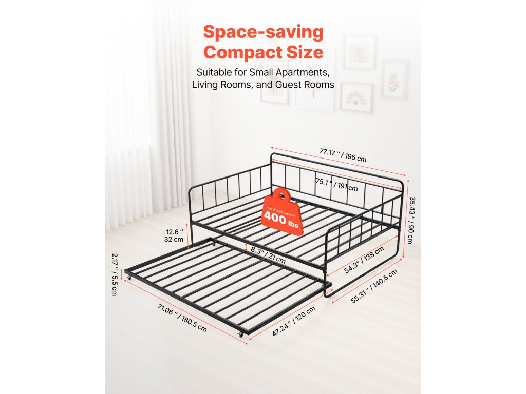 Ez a kétfunkciós nappali ágy egyszerűen két kényelmes ággyá alakítható, egyszerűen kicsúsztatható, így további alvóhelyet biztosít a vendégek számára. Maximalizálja a helykihasználást, miközben kényelmet biztosít a mindennapi használathoz.