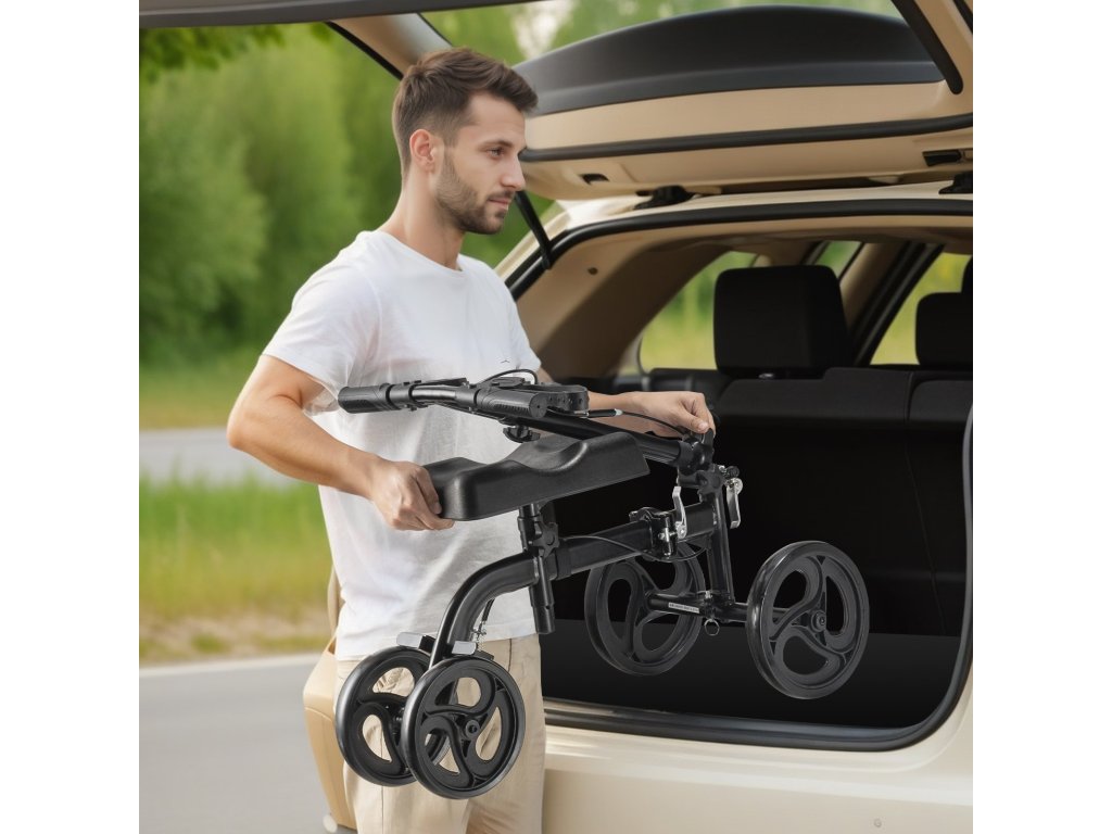 Térdre szerelhető roller, acélváz, állítható kormány, terepjáró kerekek