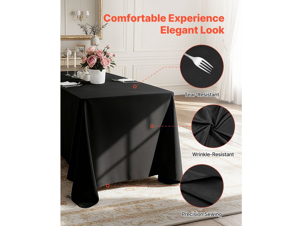 A prémium poliészter anyagból készült elegáns terítő kiemeli asztala általános megjelenését. Tökéletes esküvőkre, ballagásokra, születésnapokra és más különleges alkalmakra, és egy csipetnyi előkelőséget és stílust kölcsönöz az eseménynek.