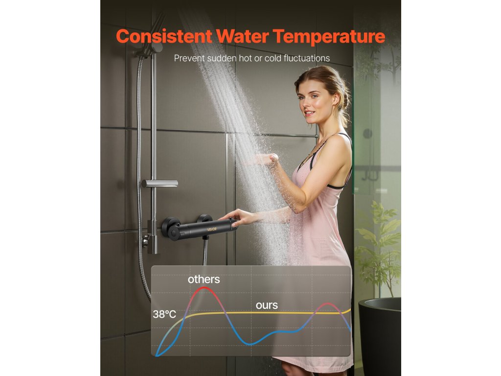 Állítsa be a tökéletes vízhőmérsékletet a termosztatikus zuhanyszeleppel 68-122℉ (20-50 ℃) tartományban. A termosztatikus rendszer megakadályozza a hirtelen hőmérsékletváltozásokat, így minden zuhanyzás simábbá, biztonságosabbá és élvezetesebbé válik az állandó beállítások nélkül.