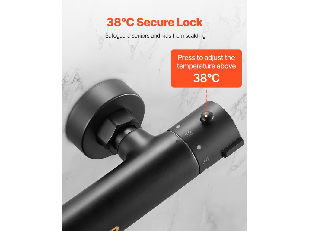 Termosztatikus zuhanycsaptelep, 38℃-ra rögzíthető, hőmérséklet-szabályozás