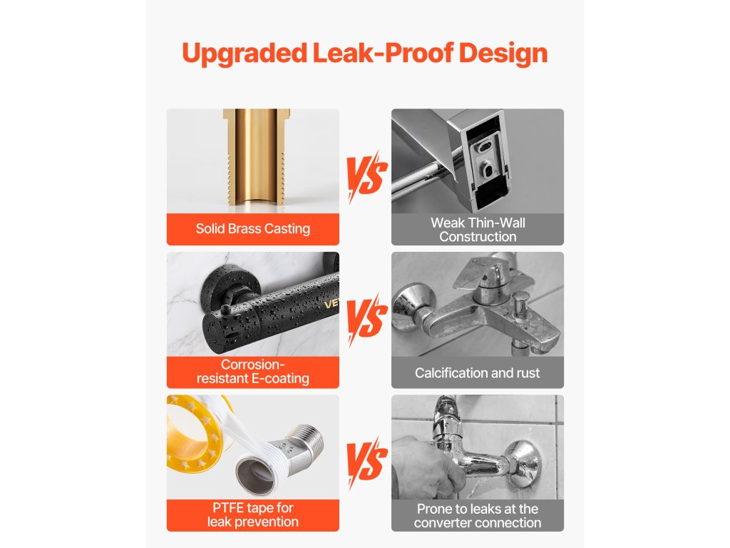 A fürdőszobai termosztatikus zuhanycsaptelep tartós sárgaréz szelepmagot használ, amelyet úgy terveztek, hogy szivárgás vagy sérülés nélkül kibírja az évekig tartó vízhatást. A korrózióálló felület idővel olyan marad, mintha új lenne. Élvezze a megbízható, biztonságos teljesítményt, amely minden fürdőszobában tartós.