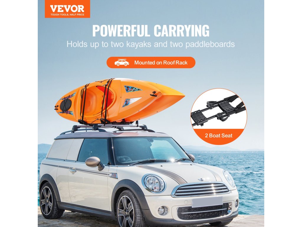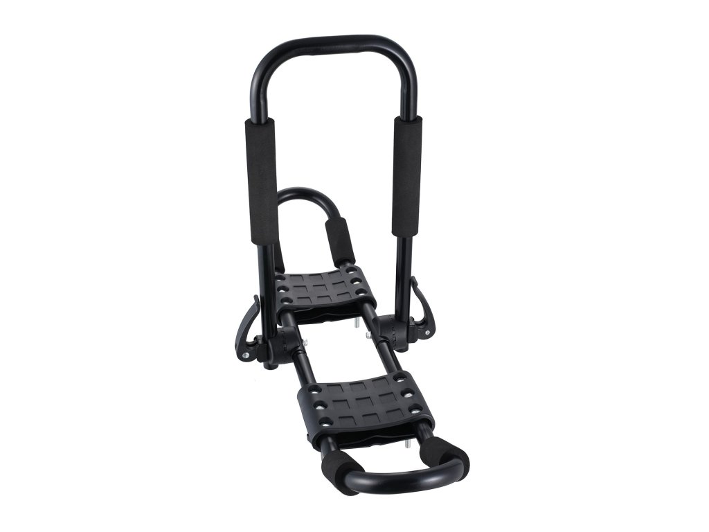 A 2 az 1-ben kajak tetőcsomagtartó speciális dupla J kialakítású, és a 2 tartó akár 2 kajakot is képes szállítani.
