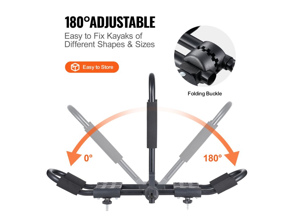 Nyissa ki az összecsukható csatot a szög gyors összehajtásához és rögzítéséhez, könnyen alkalmazkodik a különböző méretű kajak rakományokhoz, akár sílécek szállítására is. Az alsó konzol mindkét oldalon levehető.