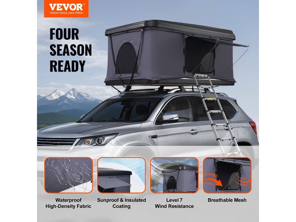Az ABS kemény héj erős és törésálló, hatékonyan ellenáll az ütéseknek. A rozsdamentes acél tartóoszlopok simán felállítják a tetősátrat, így könnyen felállítható.