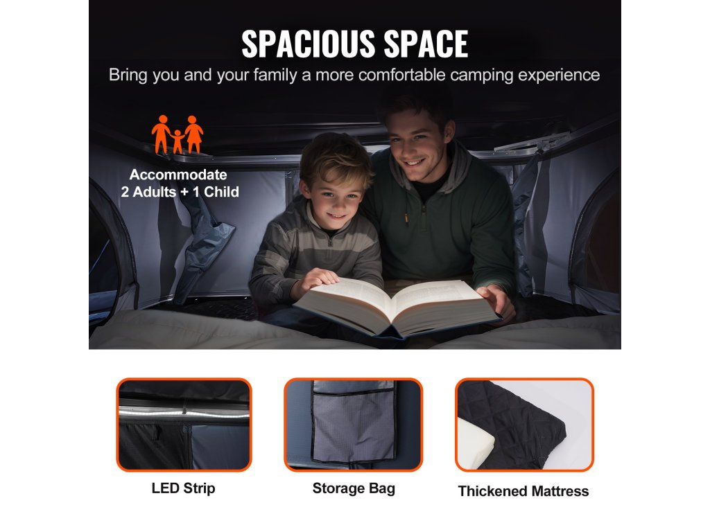 Ezt a tetősátrat a szabadtéri kalandokat kedvelő családok számára tervezték. Tágas területet kínál, amely 2 felnőtt és 1 gyermek számára kínál helyet, ajtókkal és ablakokkal, amelyek tágas kilátást biztosítanak, és lehetővé teszik, hogy teljes mértékben élvezze a nagyszerű kirándulást. A tartós sátor még sok kalandot kibír.