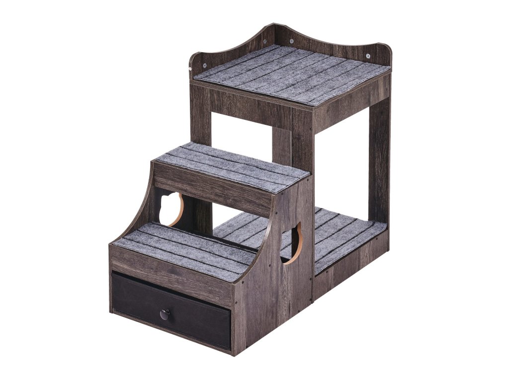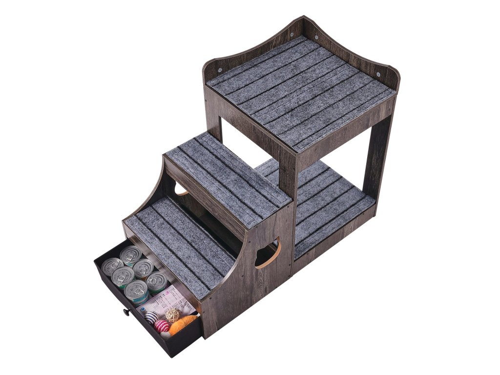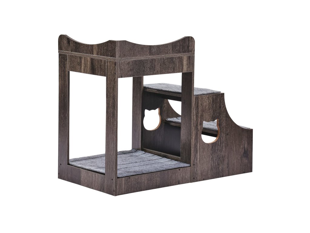 Többszintes fekhely macskáknak és kutyáknak lépcsőkkel, ablakos fekhely, szürke