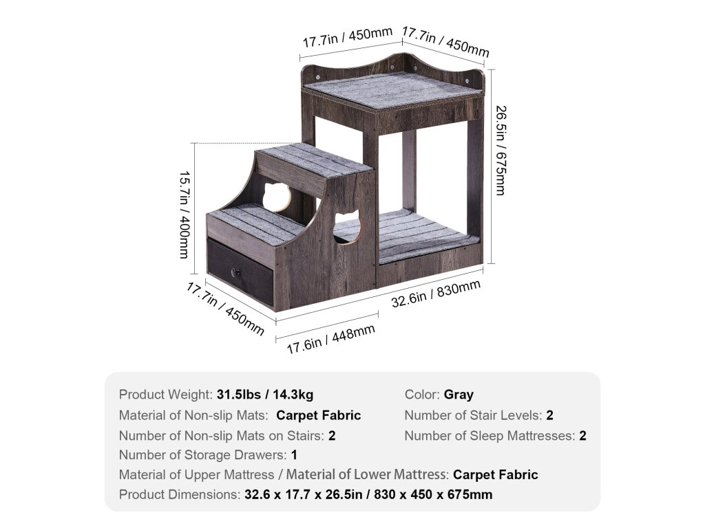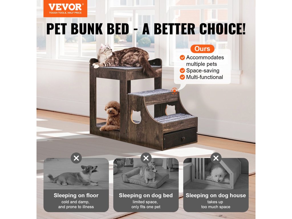 A VEVOR kétszintes kisállatágy egy többfunkciós termék, amely egy kétszintes kisállatágyat és egy kisállat mászóplatformot kombinál, tágas, csúszás- és kopásállósággal és tartóssággal, lehetővé téve, hogy háziállatai kényelmesen, biztonságosan és egyszerűen másszanak és pihenjenek.