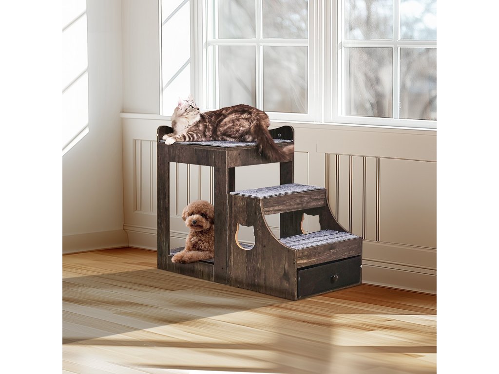 A kisállat emeletes ágyak speciálisan kutyák vagy macskák számára tervezett bútorok, amelyek lépcsőkkel rendelkeznek a könnyű fel- és leszálláshoz, így a háziállatoknak pihenőhelyet biztosítanak, míg az emeletes ágyak támogatják a háziállatokat, miközben az ablakból vagy a magasból figyelik a tájat.
