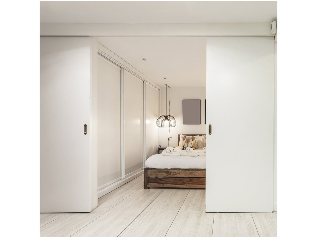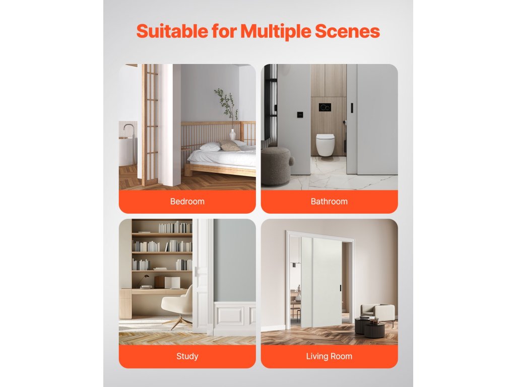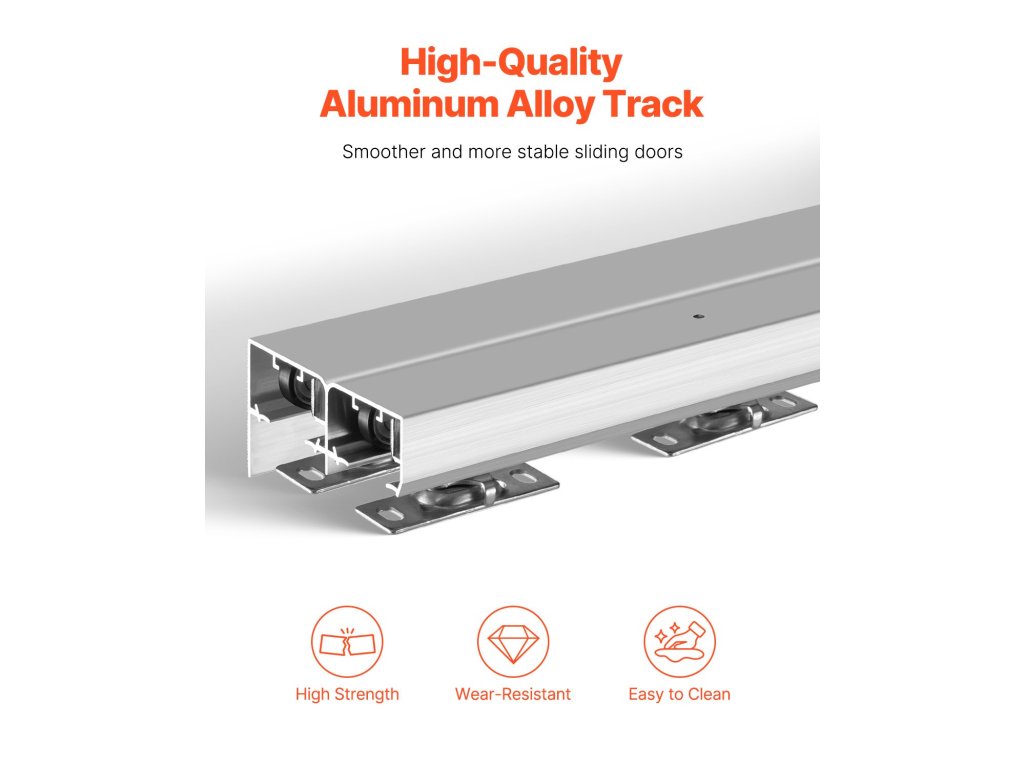 Ez a kiváló minőségű alumínium sínekből és egy háromkerekű rendszerből álló bypass ajtókészlet biztosítja a sima és stabil csúszást. Különböző belső terekhez, például nappalikhoz, konyhákhoz, hálószobákhoz és fürdőszobákhoz alkalmas.