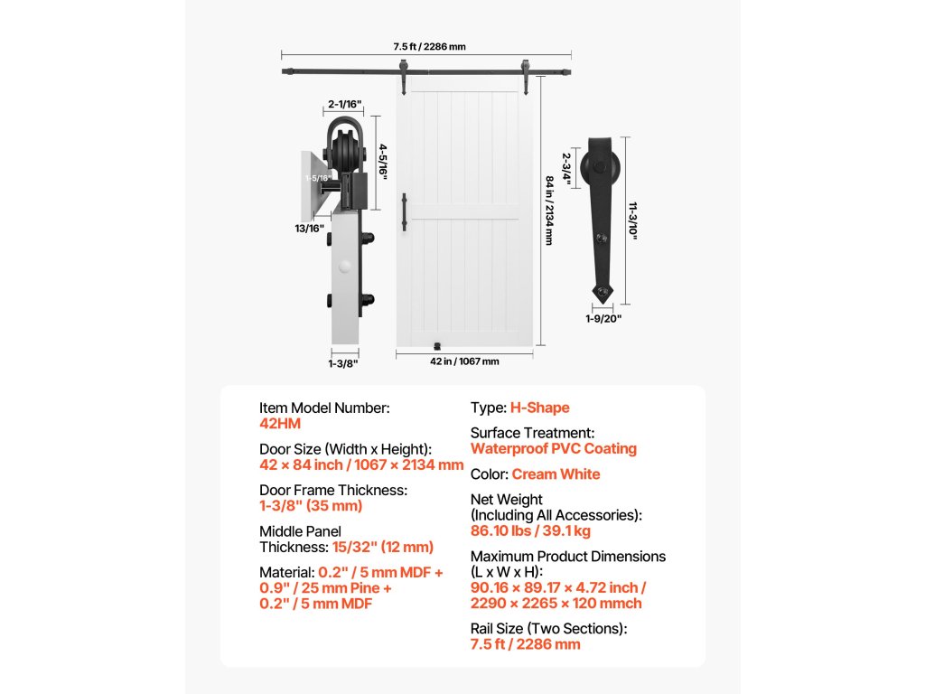 | Veľkosť dverí (šírka x výška) | 42 x 84 palcov / 1067 x 2134 mm |