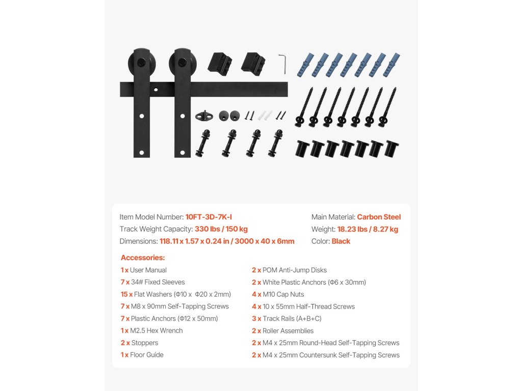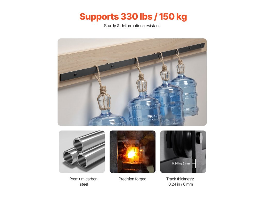 Ez a vastag és tartós szénacélból készült pajtaajtósín meghajlás és vetemedés nélkül támasztja meg az ajtót. A korlátblokkokkal és a POM pattogásgátló darabokkal nem kell aggódnia az ajtó csúszása vagy pattogása miatt - a tér biztonságban lesz!