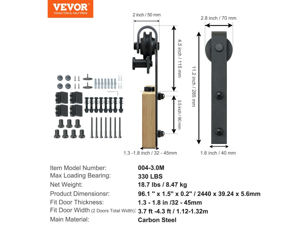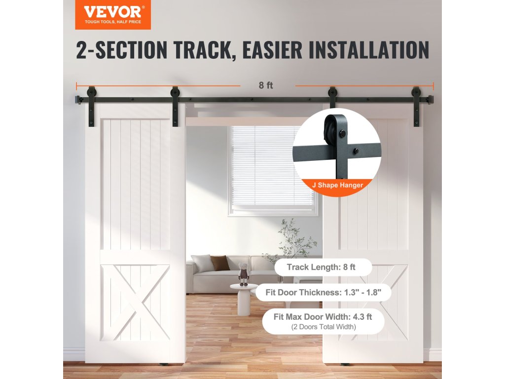 VEVOR 8FT Barn door Hardver szett dupla ajtóhoz - J-alakú zsanér