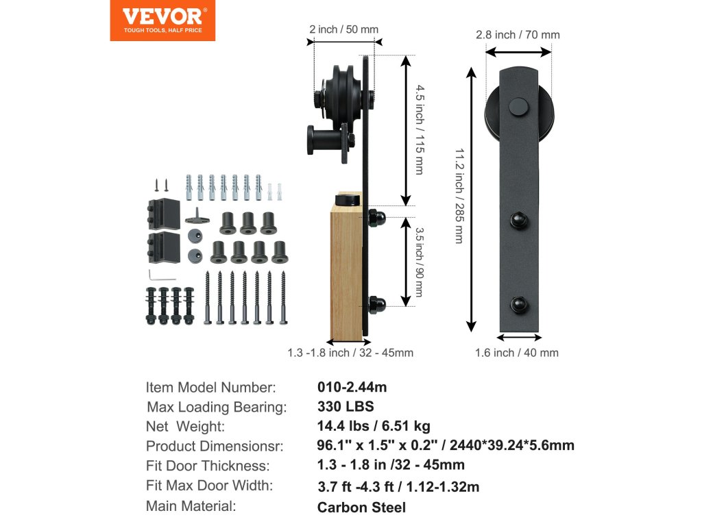 VEVOR 8FT hardver készlet egyszárnyú ajtókhoz - I alakú akasztó