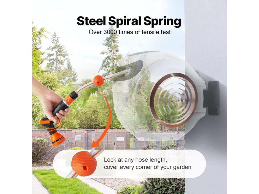 Ez a tömlődob tartós, szivárgásmentes fémcsatlakozókkal, lassú feltekercselő rendszerrel és 9 permetezési beállítással rendelkezik. Nap- és fagyálló kialakításának köszönhetően minden időjárási körülményhez alkalmas, állítható zárral és fogantyúval rendelkezik a könnyű tárolás és mobilitás érdekében. A nagyobb vízhozam növeli a hatékonyságot.