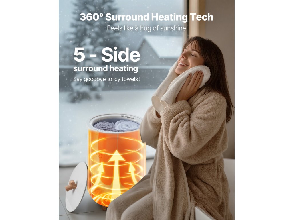 Tapasztalja meg a gyors fűtést és az intelligens biztonságot a törölközőmelegítő vödörrel - úgy terveztük, hogy kellemes, meleg törölközőket biztosítson az egész család számára. Nagy kapacitása egyszerre több törölközőt melegít fel, míg a V0 lángálló anyagok biztosítják a nyugalmat.