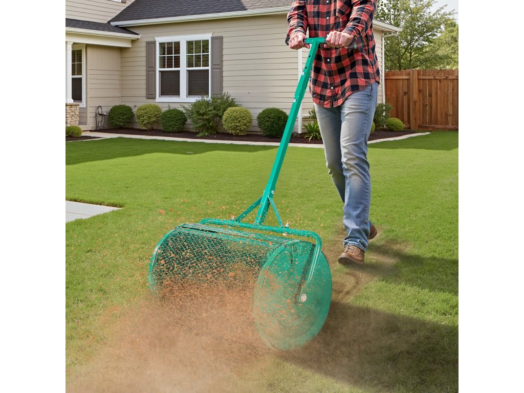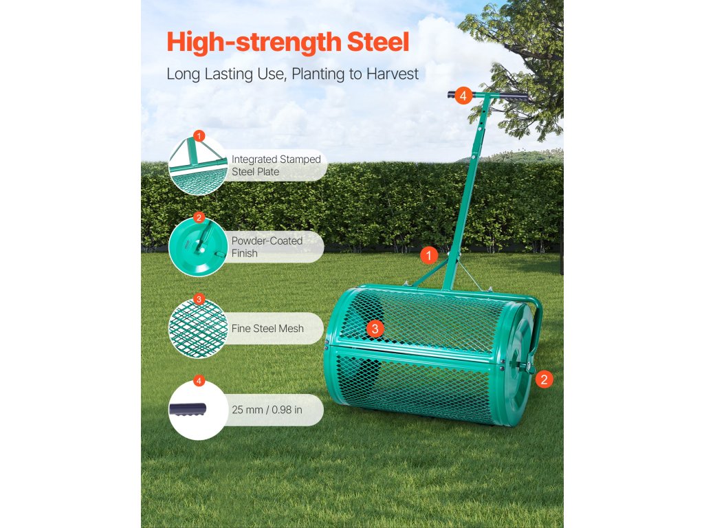 Tőzegszóró 24 hüvelyk széles, 4 magasságú, porszórt acél