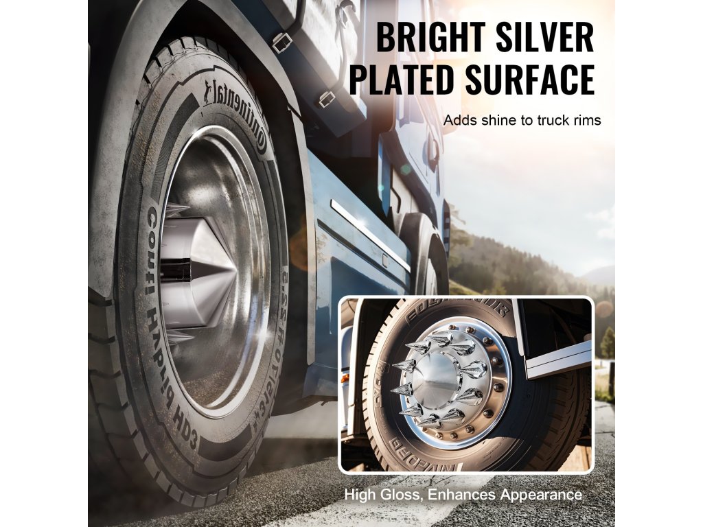 Ez a fényes ezüstszínű keréktárcsa-borítás fokozza a vizuális felismerhetőséget, és olyan galvanizálási eljárással védett, amely tartósságot, korrózióállóságot, karcállóságot, UV-védelmet és korrózióállóságot biztosít, tovább növelve a termék hosszú élettartamát.
