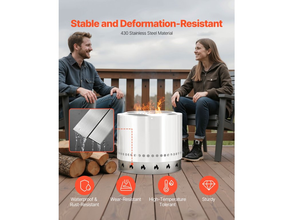 Tűzrakó állvány 68,6 cm rozsdamentes acél füstmentes hordozható keret kültéri használatra