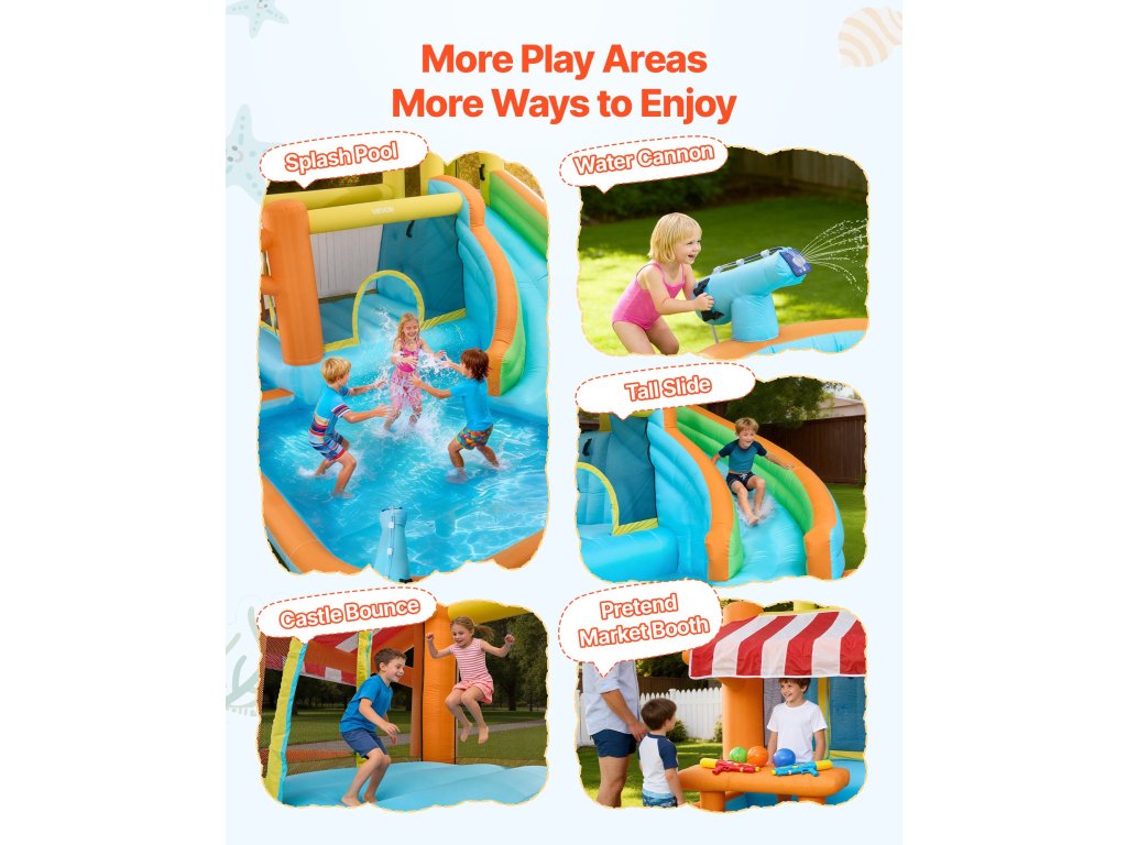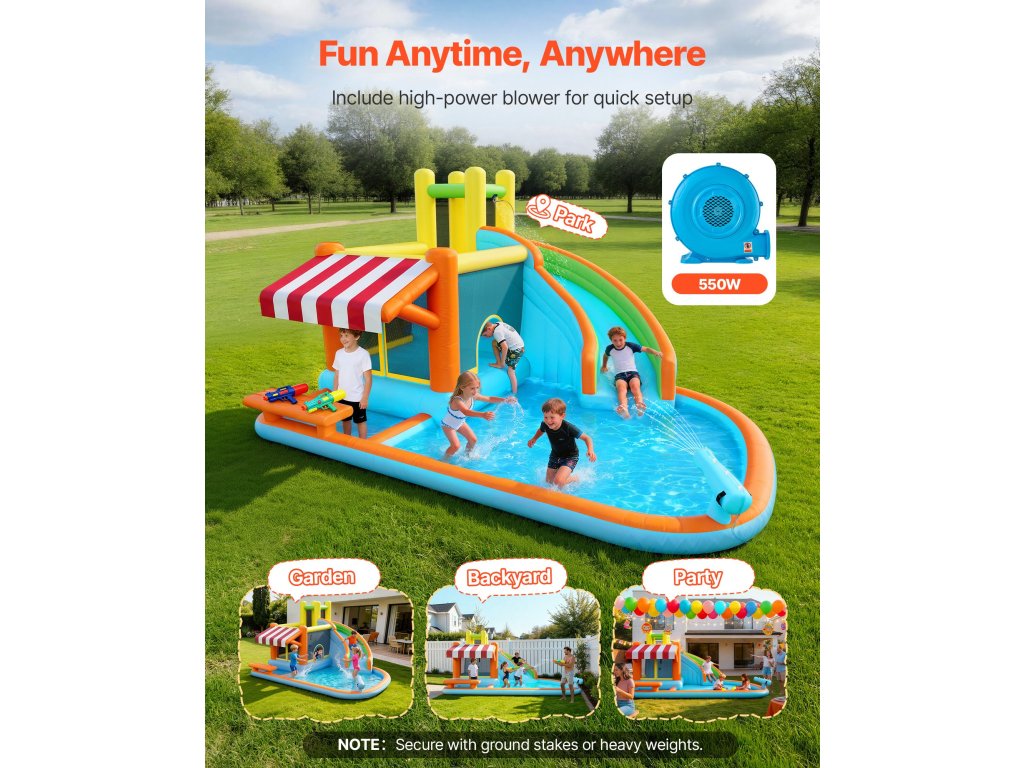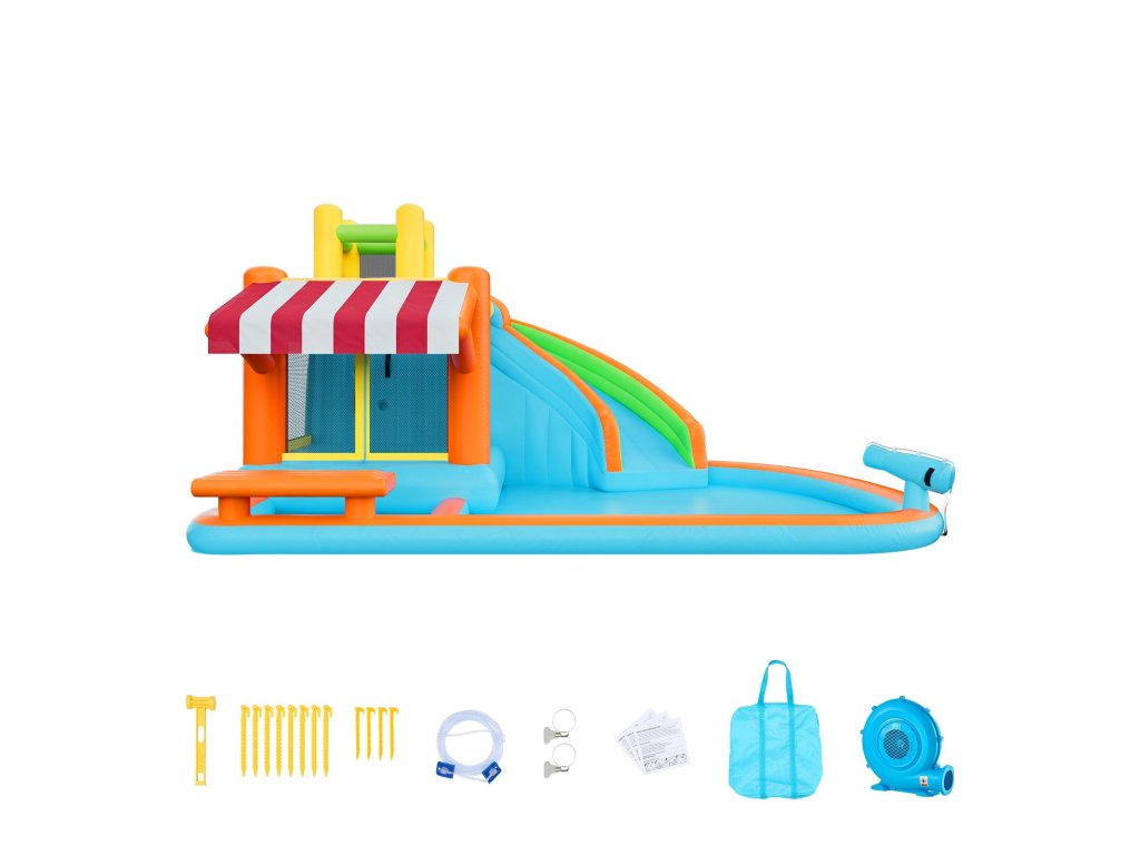Az egyedi kialakításnak köszönhetően a felfújható ugrálóvár csúszdával alkalmas születésnapi partikra, családi összejövetelekre és nyári udvari rendezvényekre. Folyamatos ugrálást, csúszdázást és kreatív játékot kínál, sok aktív szórakozást nyújtva a gyerekeknek, miközben kellemes pillanatokat szerez a barátokkal és a családdal.