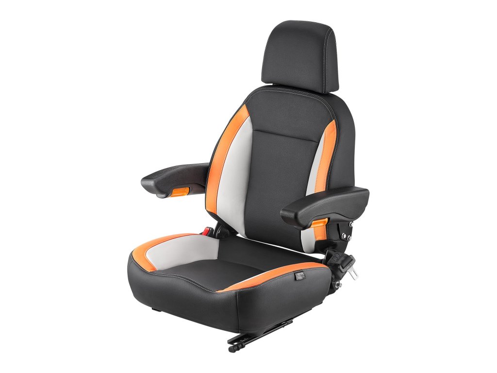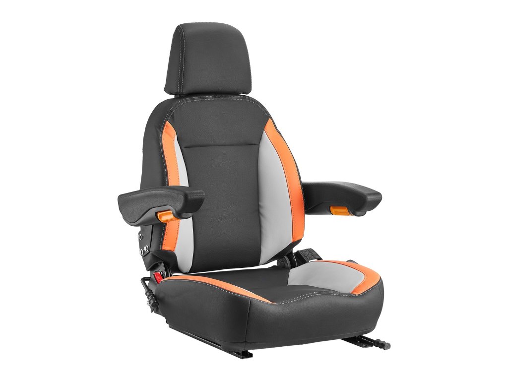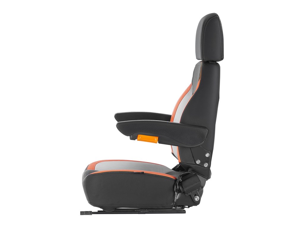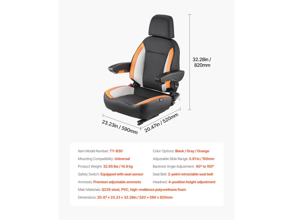 Ez a targoncaülés a targoncamodellek 99%-ával kompatibilis, állítható háttámlával, karfákkal és elülső hátmozgatással rendelkezik, 4 irányban állítható fejtámlával, hogy minden méretű vezető számára kényelmet biztosítson. A dupla biztonsági védőburkolat kialakítása alkalmassá teszi targoncákhoz és fűnyírókhoz.