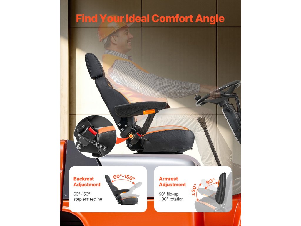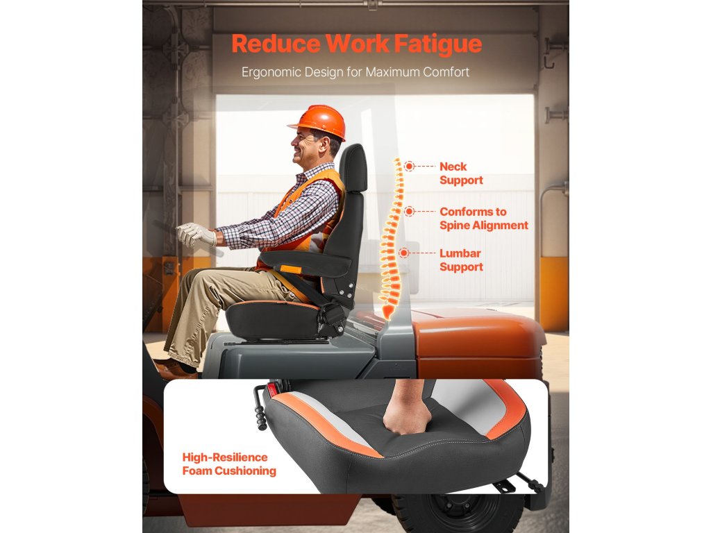 Ez az univerzális targoncaülés ideális targoncákhoz, fűnyírókhoz, traktorokhoz és kotrógépekhez, és a gépek széles köréhez illeszkedik. Élvezze az állandó kényelmet és biztonságot a különböző berendezéseken.