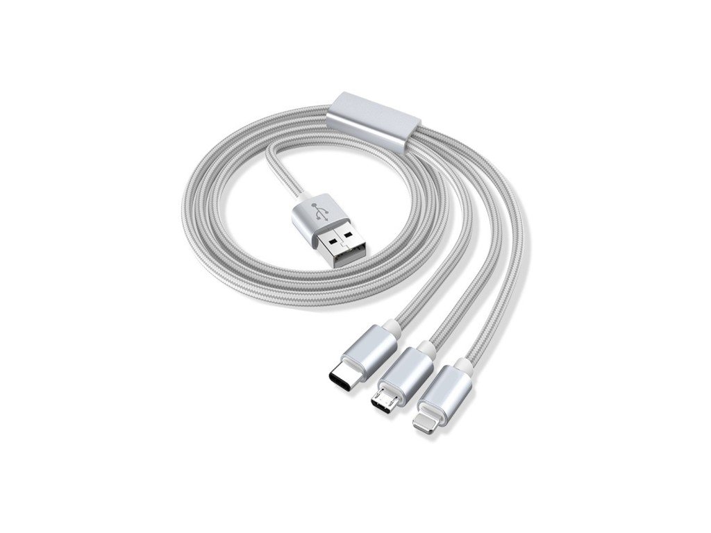 USB-kábel 3 az 1-ben nylon a microUSB / USB-C / Lightning között