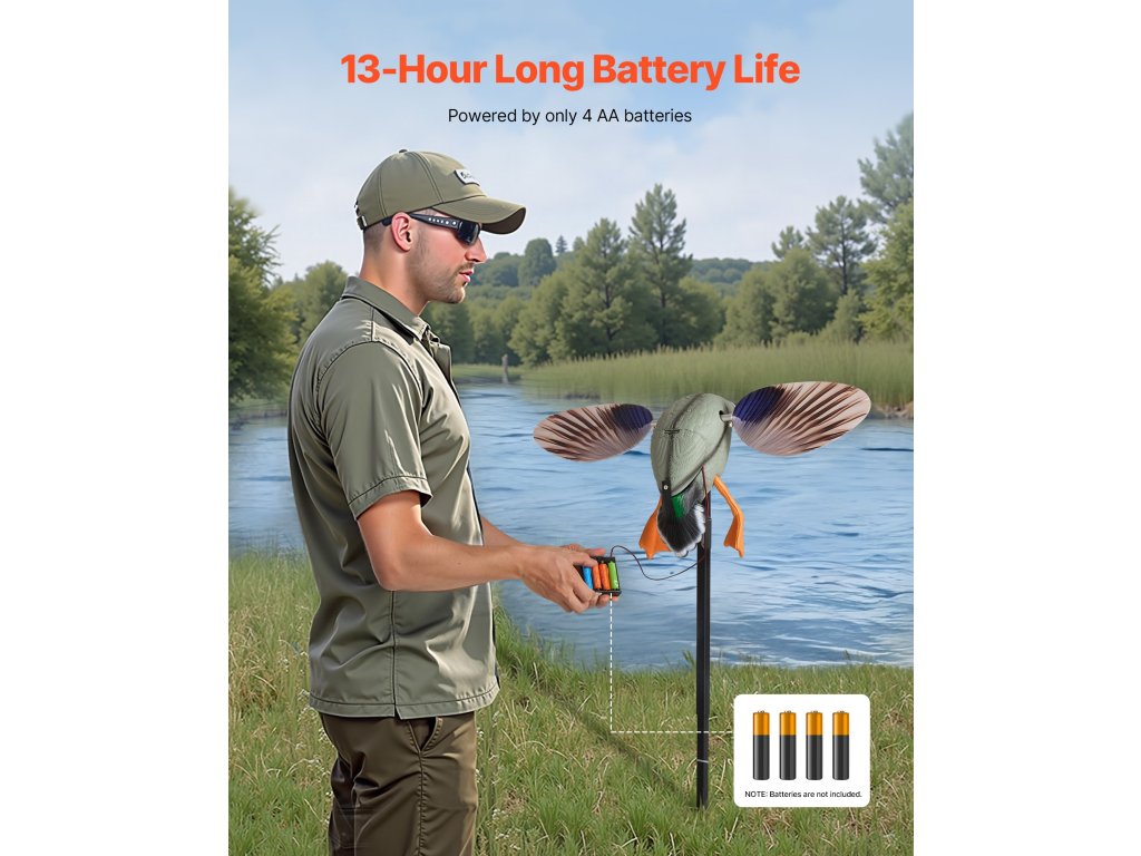 Ez a valósághű csali nemcsak valósághű megjelenéssel, hanem csapkodó szárnyakkal is rendelkezik. Négy AA elemmel (tartozék) akár 13 órán át is képes csapkodni a szárnyával, így könnyedén vonzza a zsákmányt a kültéri vízi környezetben, és rendkívül hatékony fogást tesz lehetővé.