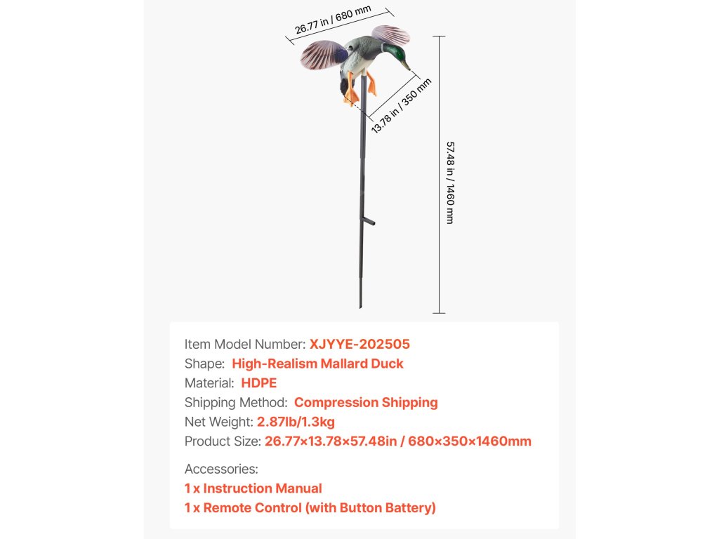 Ez a csali pontosan lemásolja az állat megjelenését. Az infravörös távirányítóval könnyen kezelhető, a tartó rúd pedig stabil. Az AA elem hosszú élettartamot biztosít, így ideális a kültéri vadászatokon a préda odavonzására!