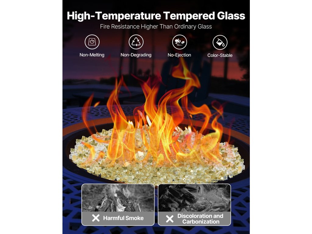 A prémium tűzüvegből készült élénk, színes dekorációs darabjaink tartósak és bírják a hőt. Nem olvadnak meg, nem repednek meg, nem képeznek füstöt vagy hamut. Csak gyorsan törölje le őket, és visszanyerik fényüket. Ideálisak kandallókba, kandallókba és kertekbe, és könnyedén csillogást kölcsönöznek otthonának.