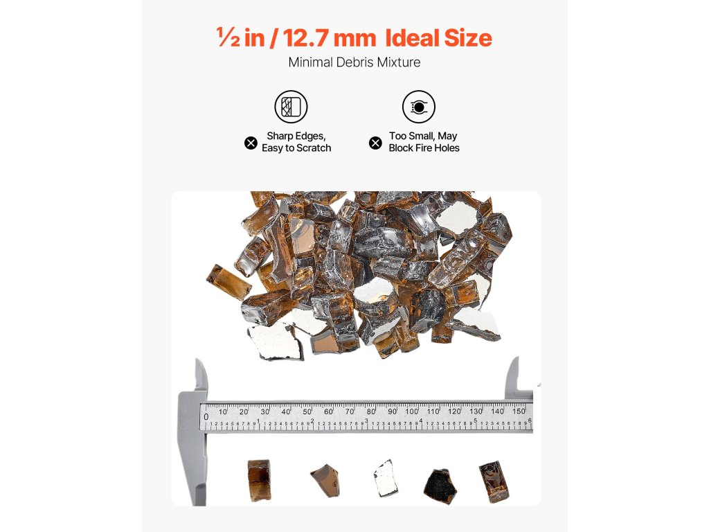 Üveg tűzrakó kavicsok 4,5 kg 12,7 mm tartós fényvisszaverő réz