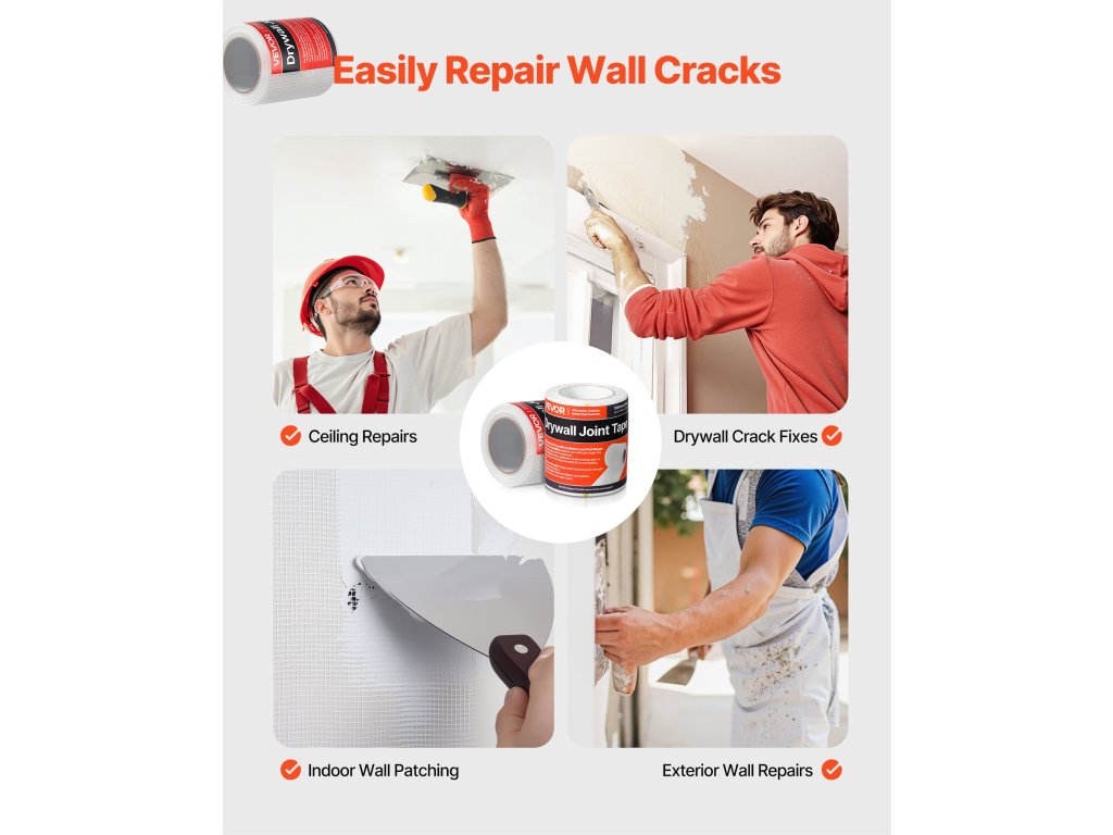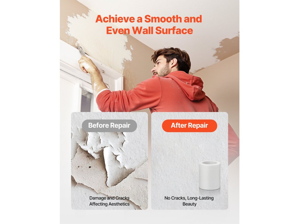 A megnövelt hosszúsággal és szélességgel tervezett gipszkartonszalag könnyedén lefedi a nagy repedéseket és sérült területeket, megkönnyítve a nagyobb javításokat és helyreállítva a sima és hibátlan falfelületet.