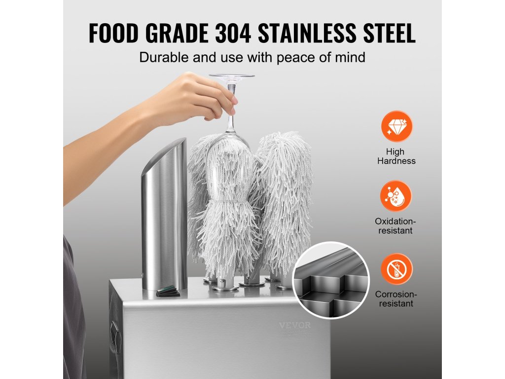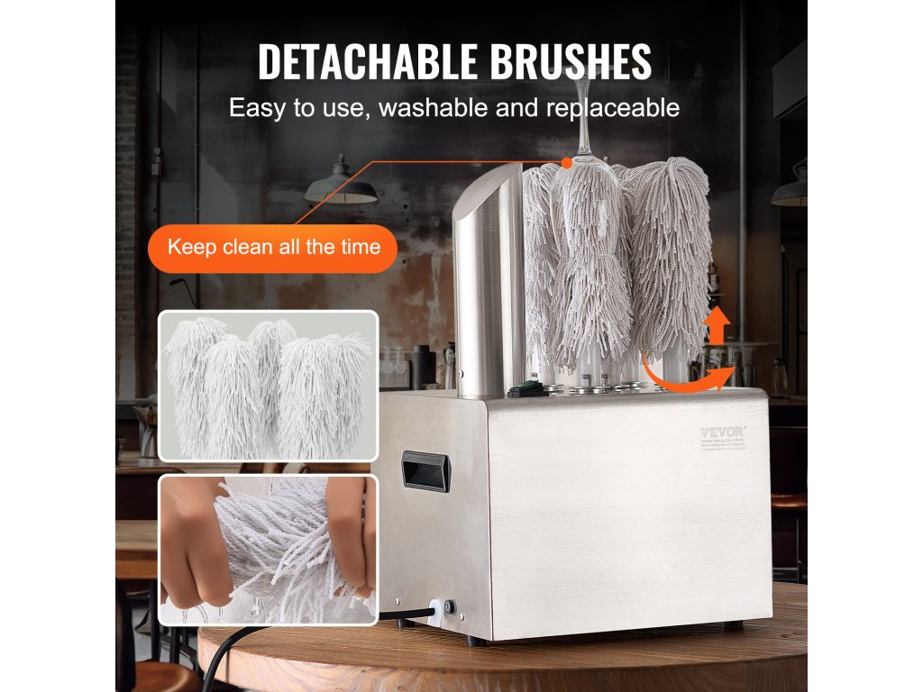 Az elektromos üvegpolírozó gyorsan polírozza a poharakat, és biztosítja a sima és fényes felületet, miközben elkerüli a karcolásokat, sérüléseket vagy bármilyen nyomot. Ideális az ügyfélforgalom csúcsidőszakában felmerülő tisztítási igények kielégítésére.
