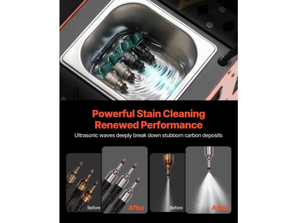 Ultrahangos befecskendezőszelep-tisztító tesztelőnk ultrahangos hullámokat használ, hogy behatoljon a befecskendezőszelepek bonyolult belső furataiba, és megtisztítsa a makacs szénlerakódásokat.