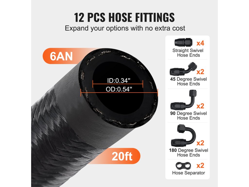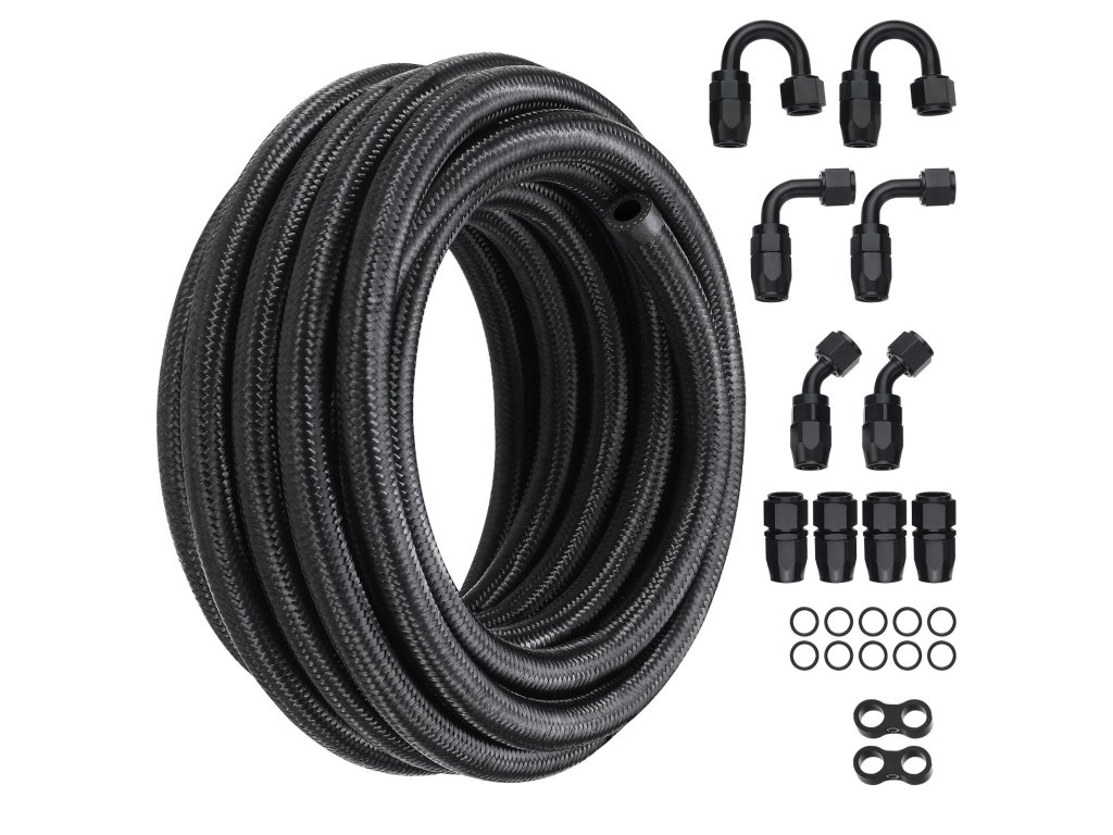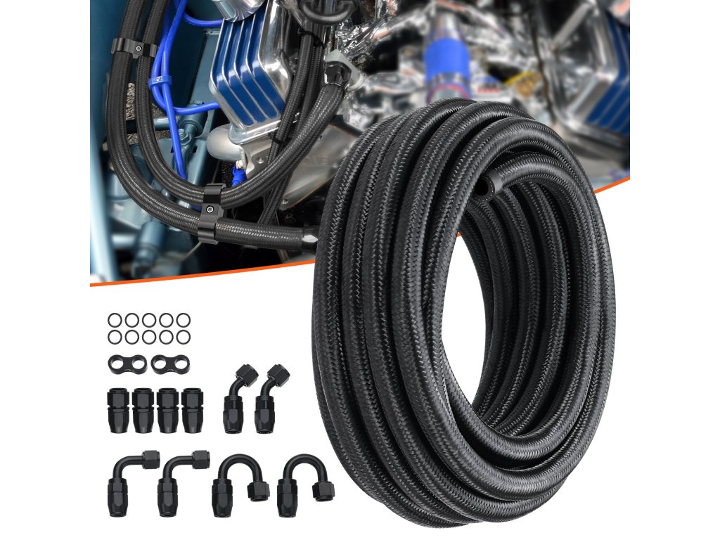 Üzemanyagtömlő készlet 20 láb 0,34" nejlon rozsdamentes acél fonott 12 darab fekete