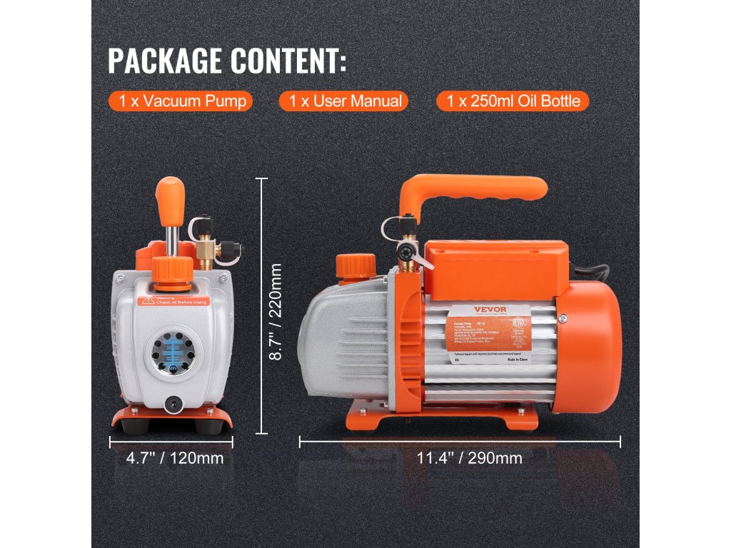 A VEVOR vákuumszivattyú a légkondicionáláshoz nagy légáramlást biztosít a csúcsteljesítmény érdekében. Ideális hűtőkarbantartáshoz, HVAC-javításhoz, gyanták gáztalanításához, fa stabilizálásához stb. Válassza a VEVOR vákuumszivattyút a sokoldalú és megbízható eredményekért!