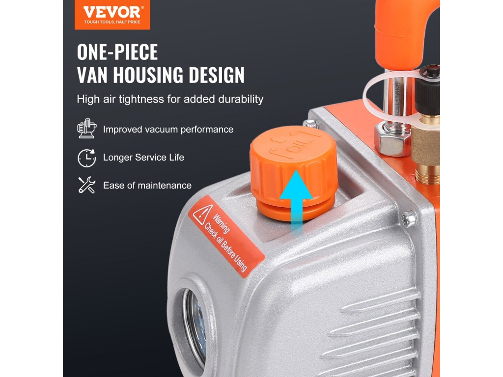A VEVOR Automatic Accu Vacuum Kit a hűtőberendezésekben lévő nyomás mérésére és a gáz elszívására szolgál a magas vákuumszabványoknak megfelelő vákuum elérése érdekében. Alkalmas az autóiparban alkalmazott HVAC- és hűtőberendezések karbantartására.