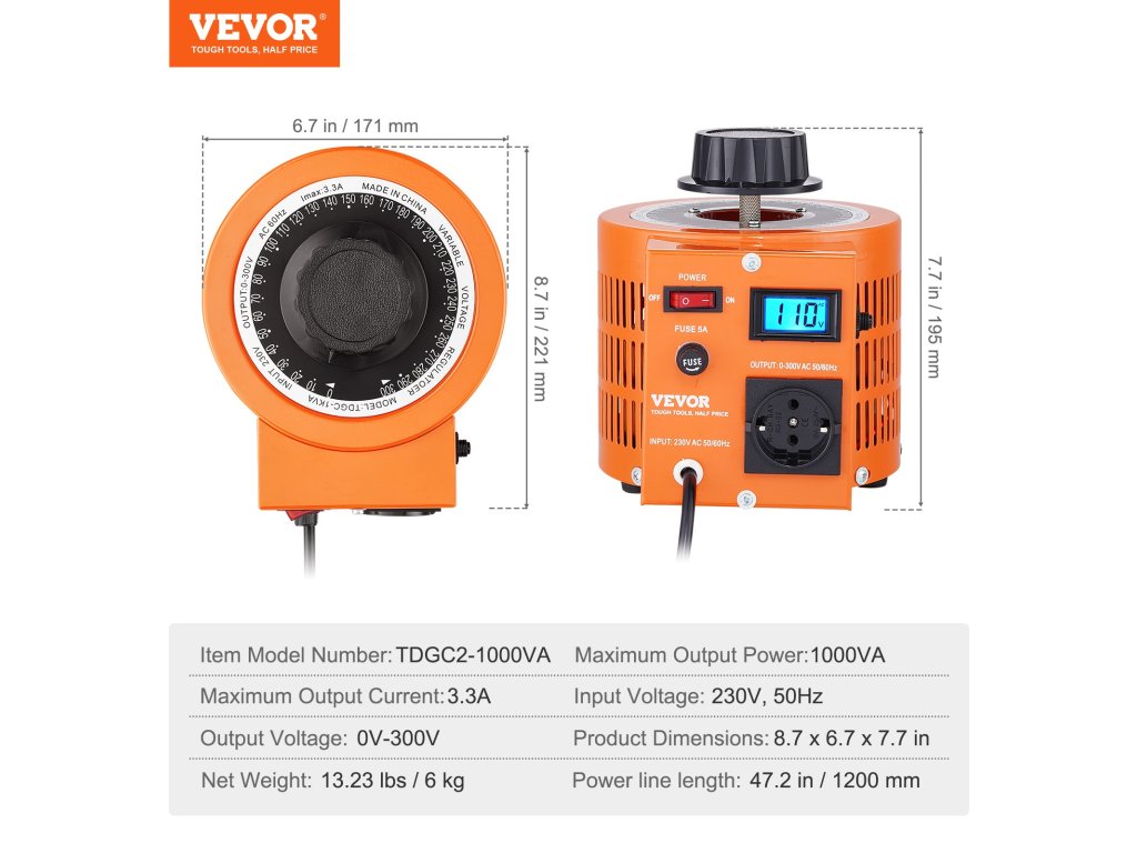 Transzformálja a feszültséget precizitással és nyugalommal! Változó feszültségű transzformátorunk 0-300 V-os beállítási tartományt, biztosítékokat, hőszabályozó kapcsolót, visszaállítható túlterhelésvédelmet és CE tanúsítást kínál a stabil áramellátás érdekében.