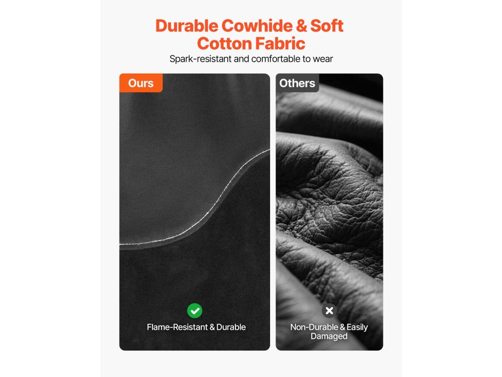 Ez a nehéz marhabőrből és FR pamutból készült hegesztőujj strapabíró, szakadásálló, kényelmes és légáteresztő - olyan kemény munkákhoz készült, mint a hegesztés, kovácsolás és famegmunkálás.