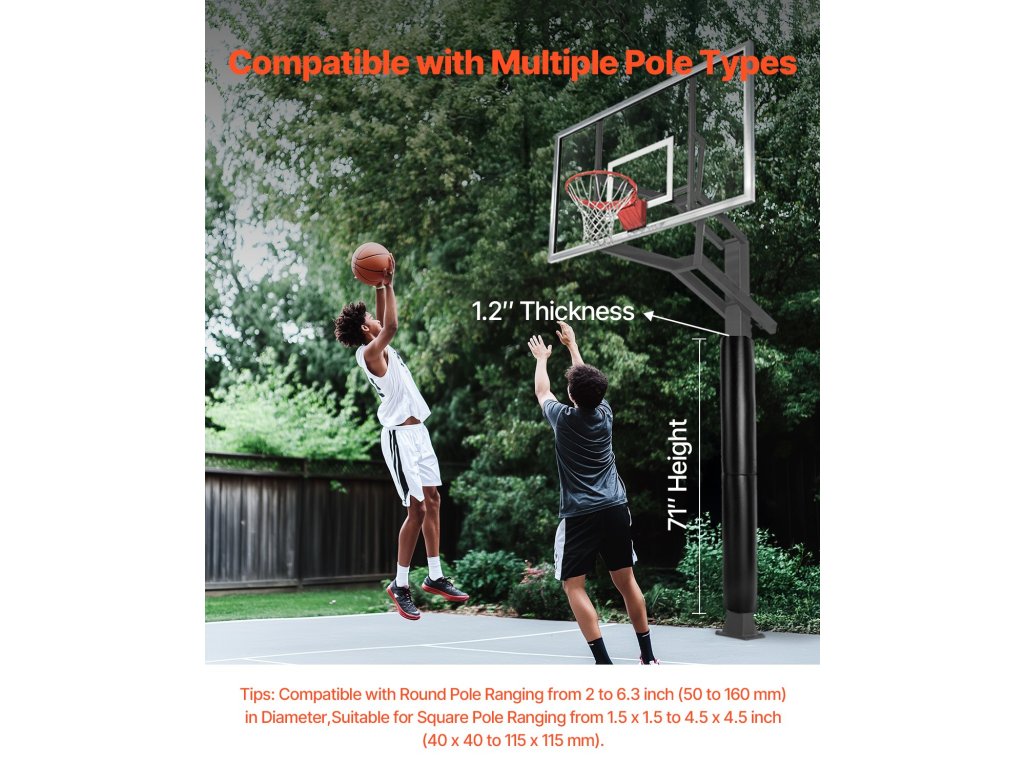 Ez a kosárlabda rúdvédő megkönnyíti a rúd kerületének mérését, és 2-6,3 hüvelyk (50-160 mm) átmérőjű kerek rudakhoz illeszkedik. Illeszkedik az 1,5x1,5-4,5x4,5 hüvelyk (40x40-115x115 mm) méretű négyzet alakú rudakhoz is. Válasszon gyorsan és pontosan az ideális illeszkedés és a jobb felhasználói élmény érdekében.
