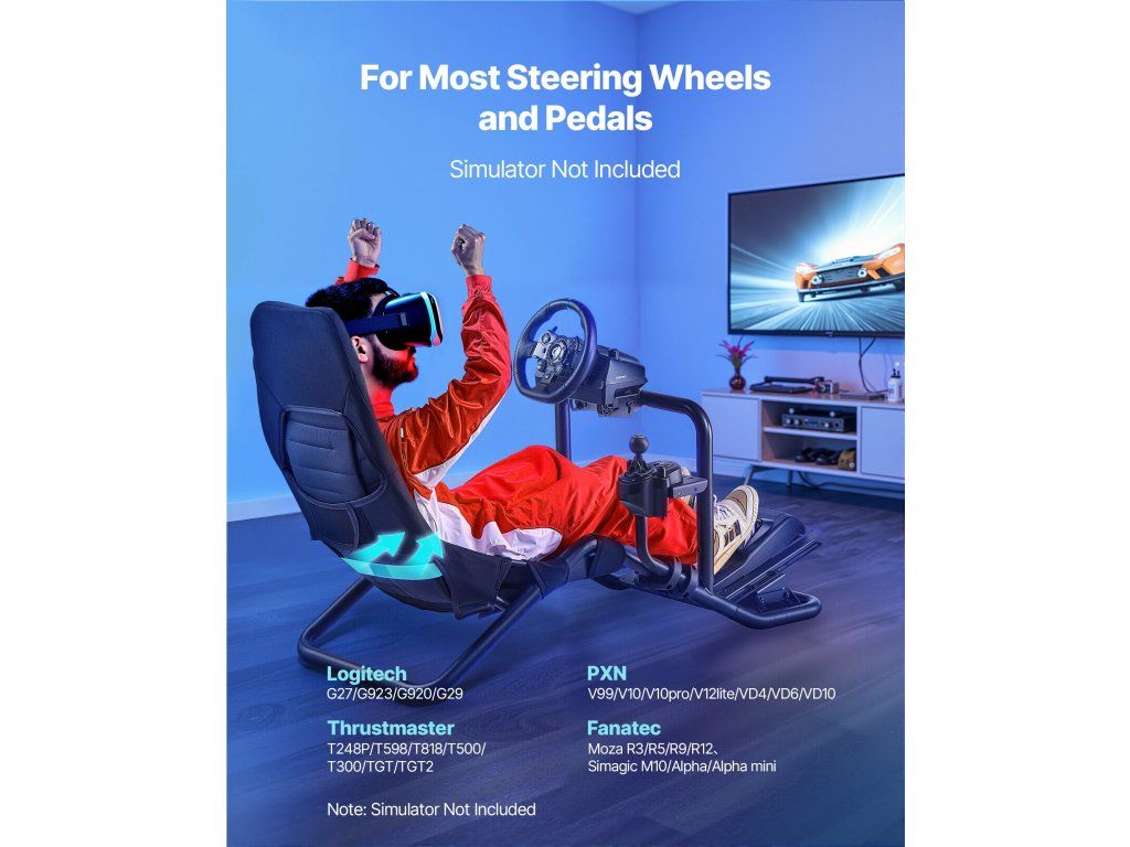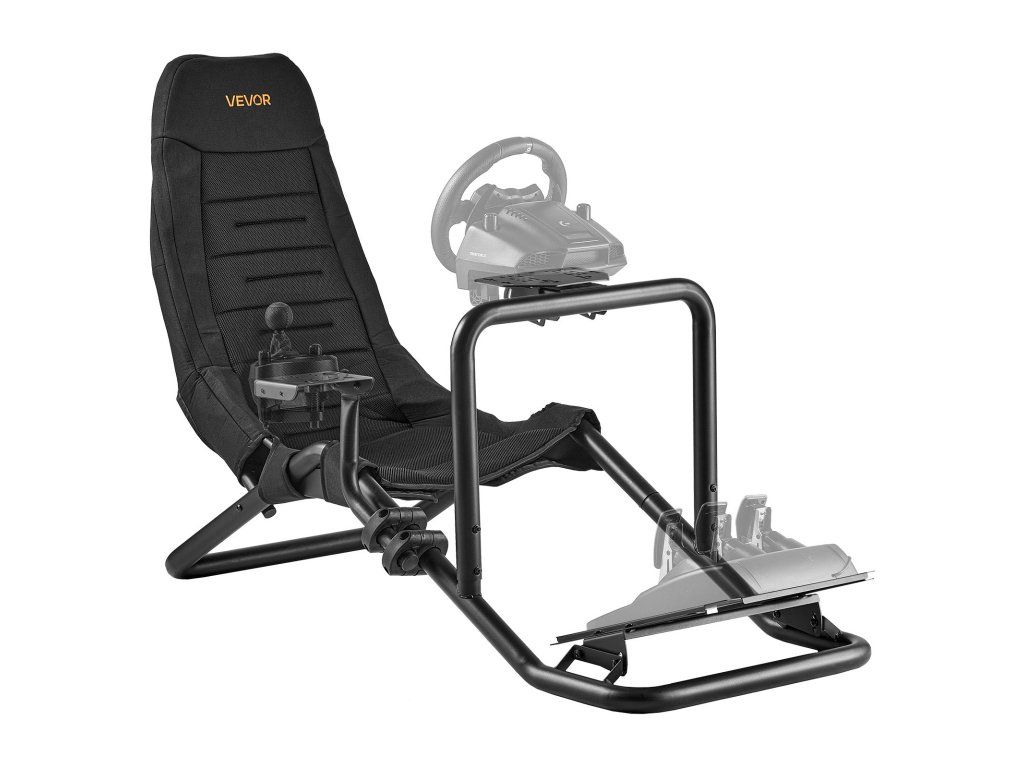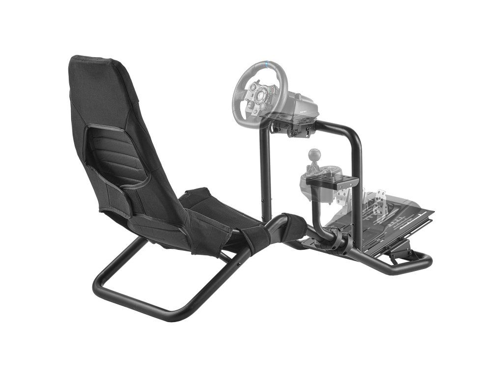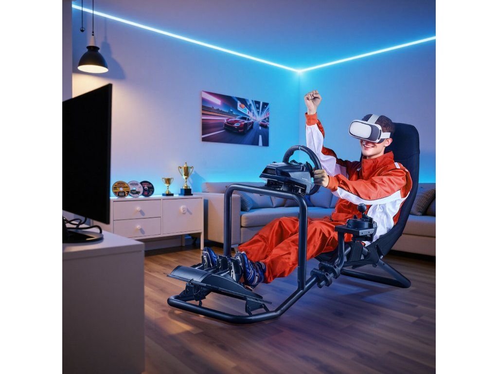 Versenykormány állvány, integrált szimulátor pilótafülke, fekete
