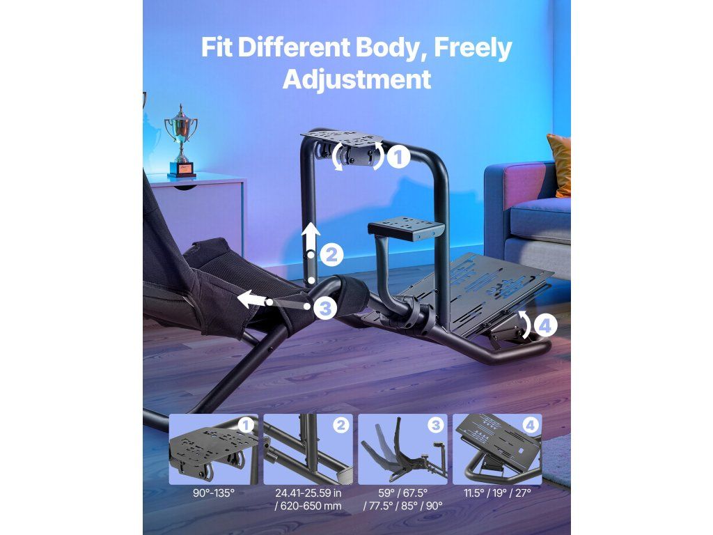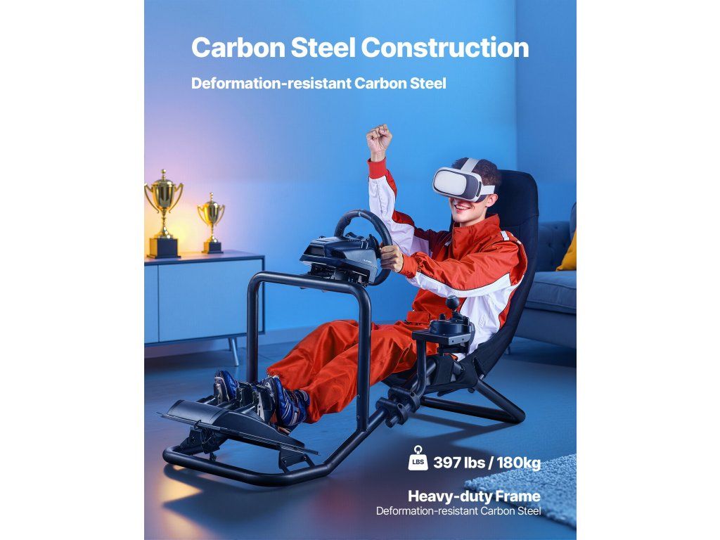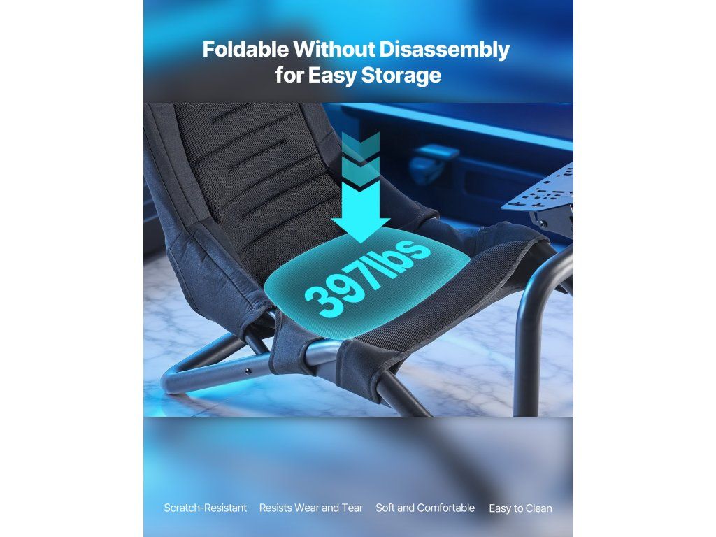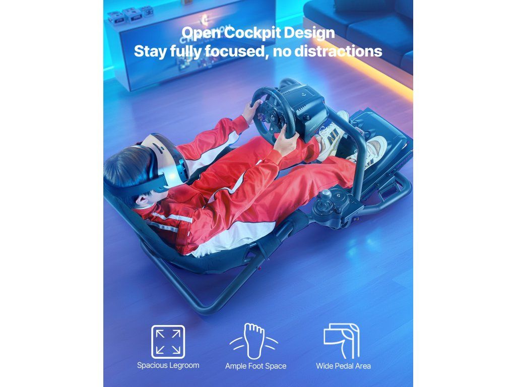 Ez a nyitott cockpit kerékpártartó tartós szénacél vázzal rendelkezik, amely képes kezelni a nagy nyomatékú kerekeket. A légáteresztő oxford szövetből készült ülés biztosítja a kényelmet, míg a nyitott kialakítás teljes szabadságot biztosít a lábaknak, így ideális otthoni vagy professzionális szimulátorokhoz.