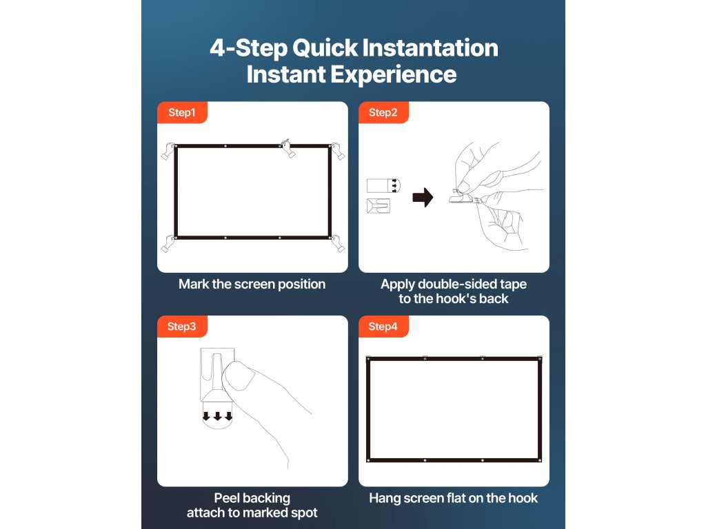 Vetítővászon 3048 mm 16:9 4k/1080p falra szerelhető, 8 akasztóval, ragasztószalagokkal