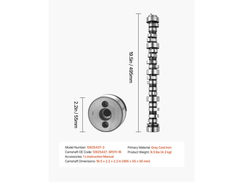 | A vezérműtengely méretei | 19.5 x 2,2 x 2,2 hüvelyk (495 x 55 x 55 mm) |