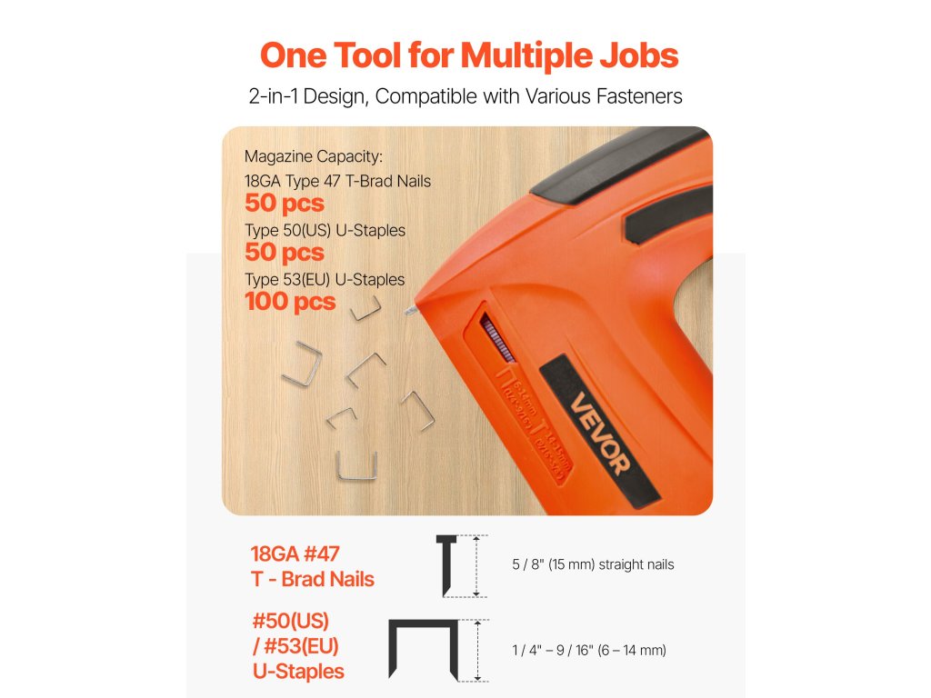 Ez a 2 az 1-ben akkumulátoros szegezőgép a szegezőt és a tűzőgépet egyesíti magában, és nem korlátozzák a mozgását a kábelek. Vigye magával bárhová, és könnyedén megbirkózhat a különféle rögzítési feladatokkal.