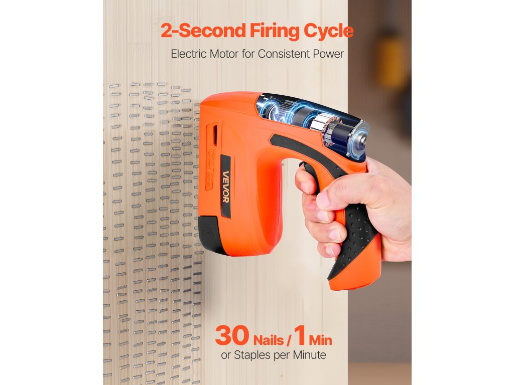 Elektromos tűzőgépünk puha fenyő-, Douglas fenyő- és vékony MDF-lapokon is működik, könnyedén behozza a kötőelemeket, miközben csökkenti a fa felhasadásának vagy a felület sérülésének esélyét.