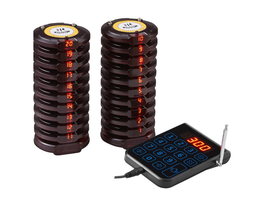 A helyreállítási csipogórendszer egy 999 csatornás, érintőkijelzővel ellátott vezeték nélküli adóból és 20 csipogóból áll. Az ügyfeleknek nem kell sorban állniuk, így megmarad a társadalmi távolság és nő a hatékonyság.