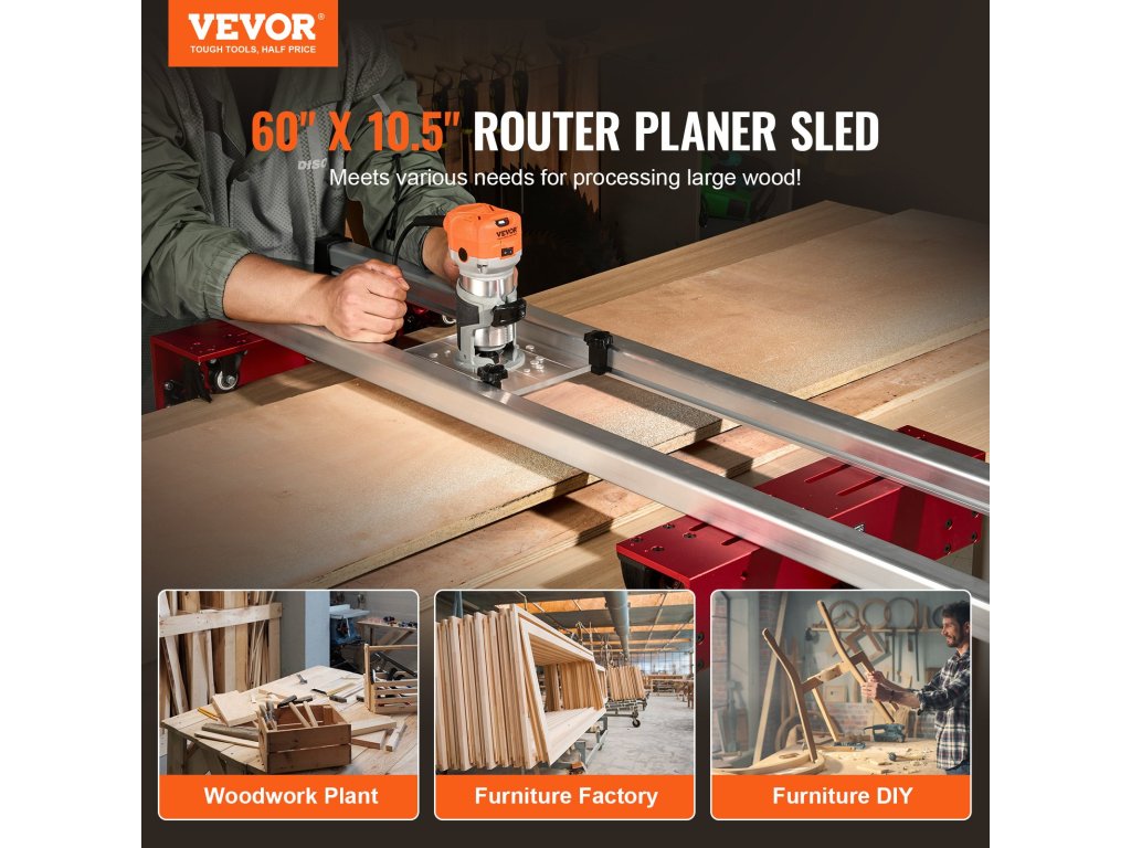 Készüljön fel arra, hogy fokozza famegmunkálási élményét a router szánkókkal! Állítható, hogy illeszkedjen a legtöbb routerhez, és könnyedén ellapítja a nagyméretű, akár 60 hüvelyk/1525 mm hosszú fadeszkákat. Ráadásul tartós 6061-es alumíniumötvözetből készült!